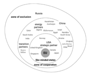 The second narrative casts the EU in the role of a normative and transformative power. The EU presents itself as a global leader that sets the rules of climate and energy policy and seeks to promote them beyond its own borders. In this narrative, the energy transition is linked to principles and values such as sustainability, a just transition, and responsibility.